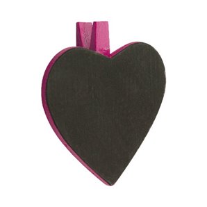 Sachet de 6 ardoises fuchsia porte-nom en forme de coeur, montées sur une mini pince à linge, d'une dimension de 5x4cm, pour y inscrire les prénoms des convives, de préférence avec une craie.