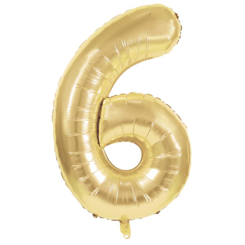 Ballon alu chiffre 6 Or aux dimensions de 19 x 36 cm.