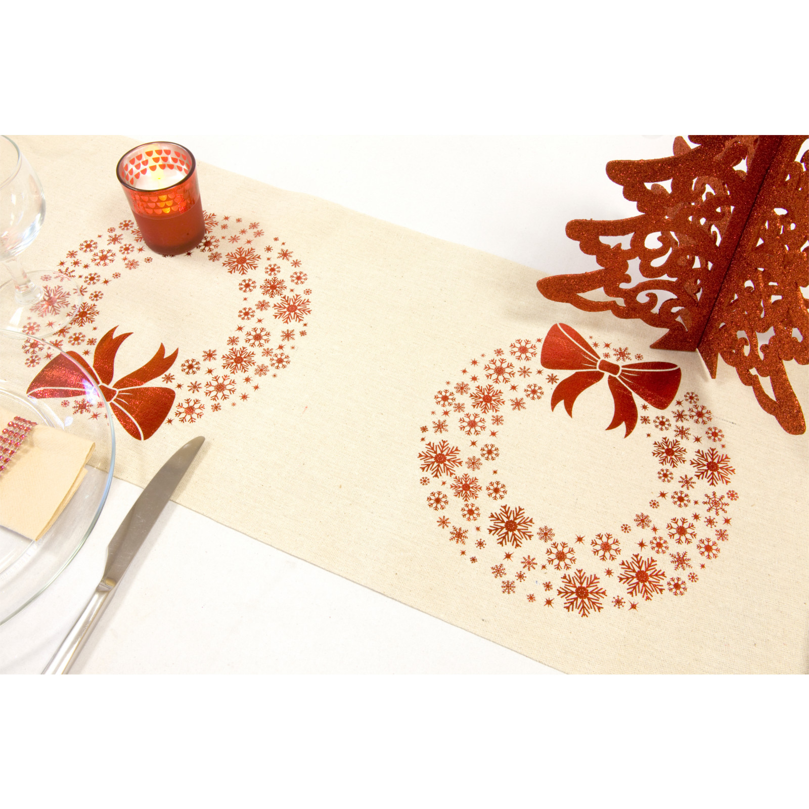 Chemin de table toile couronne de Noël 4 mètres