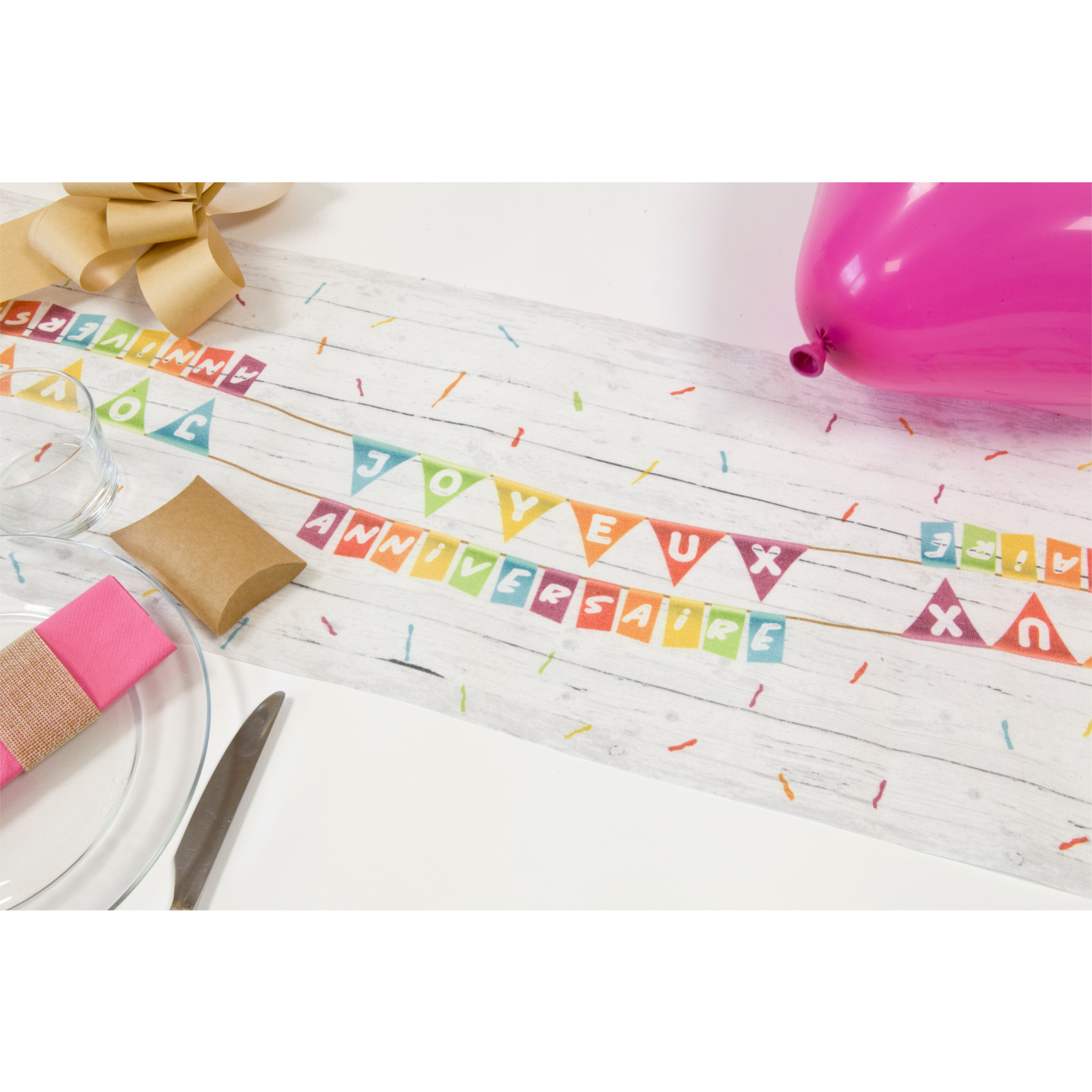• Chemin de table toile Joyeux Anniversaire 4 mètres