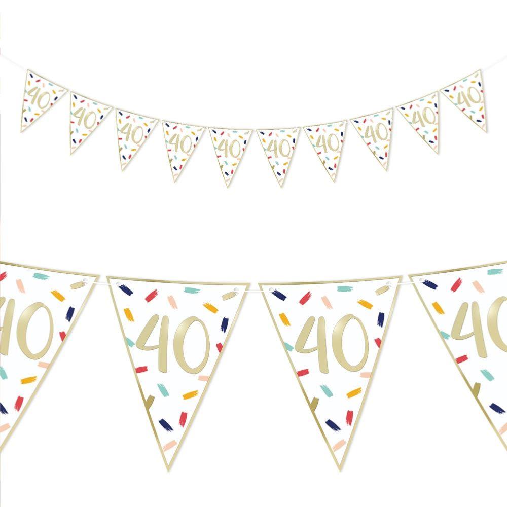 Guirlande 40 ans, 10 fanions plastifiés imprimés recto, d'une longueur de 3 mètres. Chaque fanion mesure 19 x 28 cm.