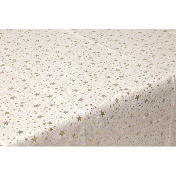 Cette magnifique nappe en tissu opaque est de couleur ivoire. Elle est imprimée de petites étoiles dorées. Ses dimensions généreuses conviendront à la plupart des tables de fêtes.