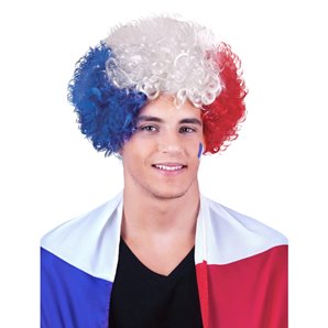 Perruque Afro tricolore, bleu-blanc-rouge, gros volume pour cette perruque idéale pour supporter la France.