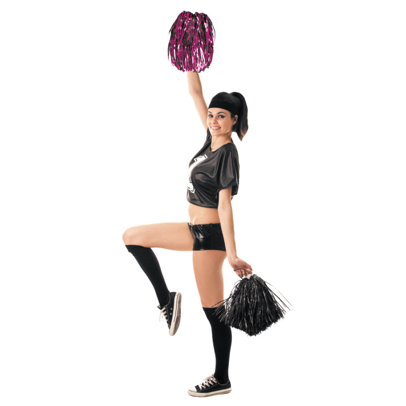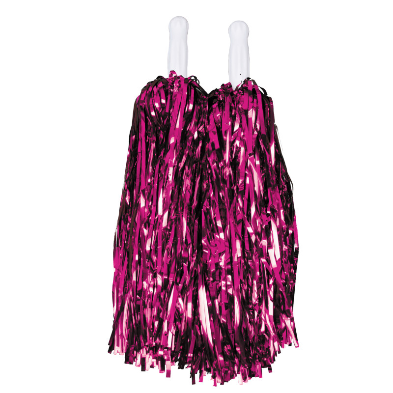 Pom-Pom métallisé Rose d'une hauteur de 23 cm environ, 40 grammes. Avec un manche en plastique blanc pour le tenir. Vendu par paire.