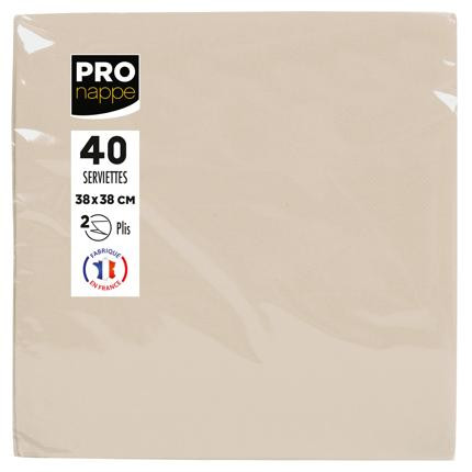 Serviettes en papier Ivoire, 38 x 38 cm, 2 plis, micro-gaufrées. Paquet de 40 serviettes.