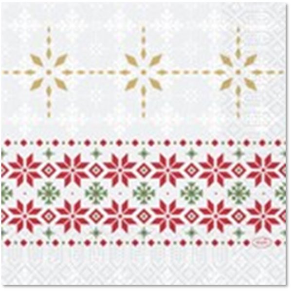 Paquet de 50 serviettes papier, 3 plis, collection Noël, modèle Tradition. Les serviettes ouate DUNI sont fabriquées à partir d'une pulpe blanchie sans chlore et sont imprimées avec des encres à base d'eau. Elles sont donc recyclables et biodégradables, certifiées FSC (Forest Stewardship Council).#