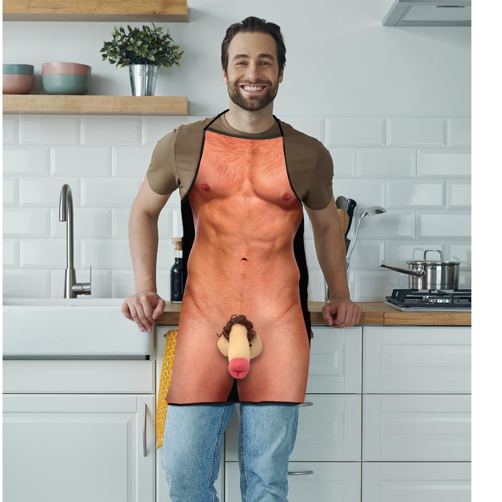 Faîtes rire vos invités grâce à notre tablier représentant un homme nu dont le pénis peut se soulever.